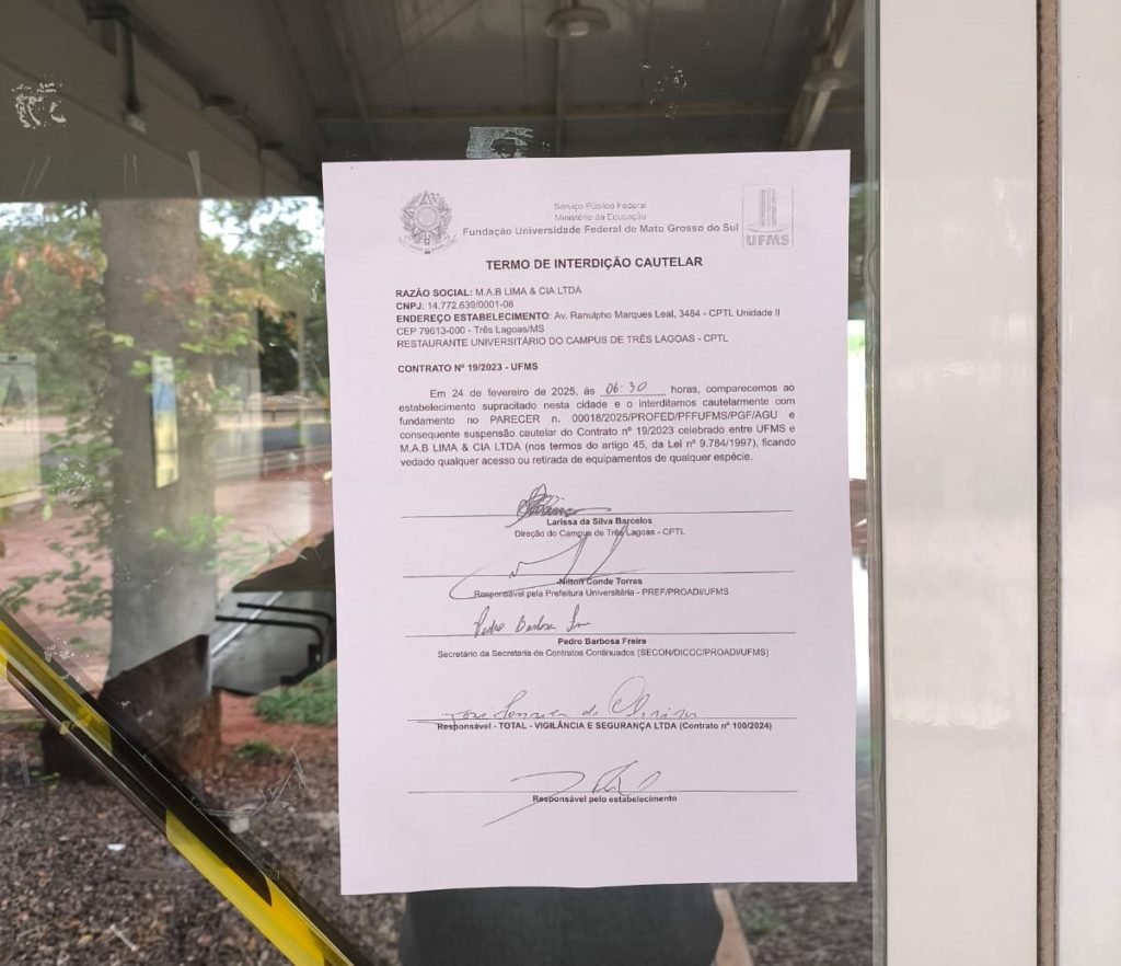 UFMS fecha restaurante de Três Lagoas por suspeita de irregularidades