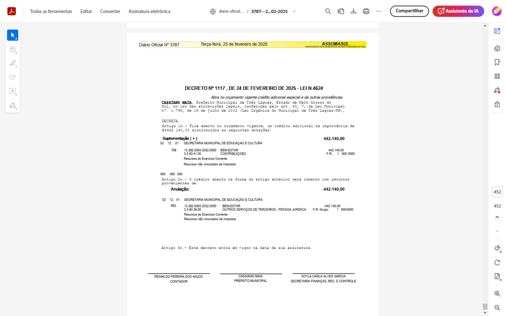 Com informações dados abertos, Diário Oficial Nº 3787 Terça-feira, 25 de fevereiro de 2025