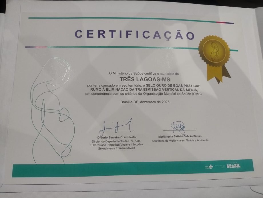 O reconhecimento foi concedido após Três Lagoas comprovar zero casos de transmissão vertical do HIV, além de alcançar índices de excelência na prevenção da sífilis e da hepatite B, com cobertura vacinal superior a 98% em recém-nascidos e ampla oferta de testagem na rede pública e privada.